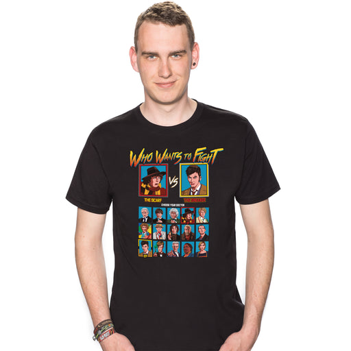 Visualizza tutti i dettagliLa maglietta "Who wants to fight" è disegnata come la schermata di selezione dei personaggi di un classico videogioco beat 'em up degli anni '90 - ...