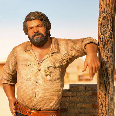 Die in Zusammenarbeit mit Pedersoli entwickelte Statue zeigt Bud Spencer auf einem passenden Western-Diorama und ist weltweit auf 1500 Stück limitiert. Neben einem Echtheitszertifikat liegt auch eine Echtheitsmedaille bei, mit der Du beweisen kannst, wie grandios Dein neuestes Schmuckstück wirklich ist. :) Am besten macht er sich aber natürlich an der Seite seines Filmpartners Terence Hill.