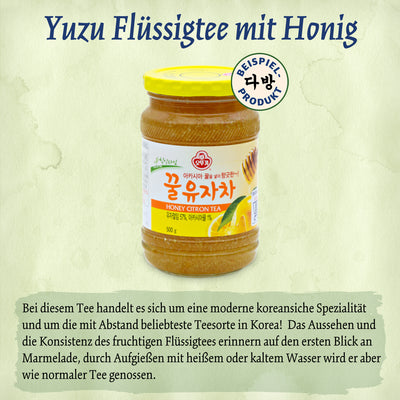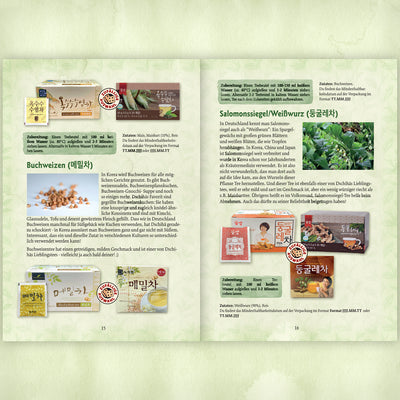 In dieser 8-teiligen Erlebnisbox findest du koreanische Teesorten wie z.B. roter Ginseng, Weißwurz, oder Yuzu-Früchtetee. Zusätzlich liegt eine ausführliche 28-seitige Broschüre über die Tee-Traditionen in Korea bei. Darin findest du auch die Zutaten, Zubereitungsarten und historisches Hintergrundwissen für jede einzelne Teesorte. Wusstest du zum Beispiel, dass man in Korea gern Tee aus flüssigem Teekonzentrat trinkt, das wie Marmelade aussieht? Oder dass einige milde Teesorten in Korea wie Wasser zum Essen getrunken werden? Oder wo der Unterschied zwischen Eistee und koreanischen Tee-Kaltgetränken liegt? Das und vieles mehr kannst du in deiner Broschüre nachlesen und mit den Teesorten deiner Dabang-Box selbst auskosten!