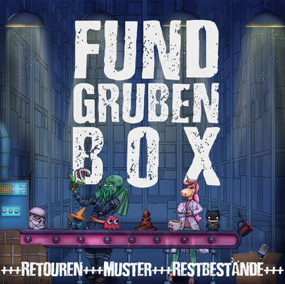 Damit diese nicht mehr unser Lager und die Büros vollstellen, kannst du dir diese Artikel jetzt zum absoluten Schnäppchenpreis sichern: In der Fundgrubenbox findest du ein bis vier Überraschungsartikel im Neuwert von insgesamt 20 bis 30 Euro. Du sparst also richtig! Alle Artikel sind Nerd-Produkte, die es bei uns im Shop gab, gibt oder geben könnte!