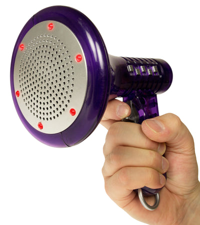 Dieses Gadget ermöglicht es Dir, Deine Stimme auf unterschiedlichste Weise zu verzerren. Benutzt wird es wie ein Megafon: Schalter am Griff gedrückt halten und ohne Abstand ins Mikrofon sprechen. Mit fünf Schiebeschaltern kann eingestellt werden, wie die Stimme klingen soll. Aus diesen fünf Schaltern ergeben sich 10 Kombinationen – von ganz tief wie Darth Vader bis ganz hoch wie C-3P0 ist also alles möglich! Sechs rote LEDs unterstützen den Effekt, indem sie bei Veränderung der Stimme aufleuchten.