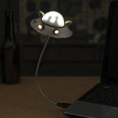 Unabhängig von Ricks Absichten kannst Du mit dem Rick and Morty USB-Raumschiff-Licht Deinen Arbeitsplatz verschönern und etwas Licht ins Dunkel bringen. Dank des flexiblen Metallarms kannst Du die Lampe rund um den USB-Port Deiner Wahl (Laptop, Tastatur, etc.) frei positionieren und Dich auf abgedrehte Abenteuer mit der Familie Sanchez vorbereiten.