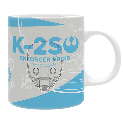 Falls Du wissen möchtest, wie der treue Begleiter von Cassian Andor aufgebaut ist, solltest Du den Rogue One K-2SO-Becher zu Rate ziehen. Auf diesem rundum bedruckten Keramikbecher findest Du eine schematische Darstellung des sanften Riesen, die Dir gleichzeitig zeigen kann, wie Du baugleiche Droiden des Imperiums ausschalten kannst. Man braucht halt nicht immer die Macht, manchmal hilft schon ein leistungsstarker Prozessor und ein lockerer Spruch auf den Lippen (bzw. auf dem Lautsprecher). ;)