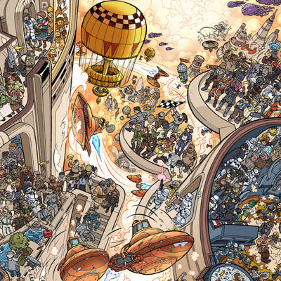 • Zeigt detailliert gezeichnete Charaktere und Orte aus dem Star-Wars-Universum
