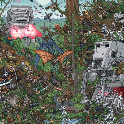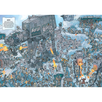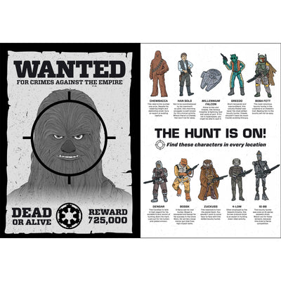 Im Star Wars Wookiee-Wimmelbuch ist es Deine Aufgabe, Chewie und Co. möglichst schnell zu finden. Das ist aber leichter gesagt als getan. Denn der pelzige Bowcaster-Träger hat sich an den verschiedensten Orten quer durch die ganze Galaxie versteckt. Vom Todesstern bis hin zu den eisigen Ebenen Hoths liegt es nun an Dir, alle zehn gesuchten Charaktere aufzuspüren. Mal verstecken sie sich zwischen Ewoks, mal zwischen Stormtroopern und mal hinter der nächsten Ecke. Die handgezeichneten Bilder strotzen nur so vor Details, es gibt also auch abseits Deiner Hauptaufgabe so einiges zu entdecken.