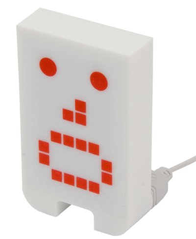 Tengu ist ein kleines animiertes Gesicht für den USB Anschluss. Tengu kann viele verschiedene Gesichter darstellen, welche sich synchron zu den Umgebungsgeräuschen bewegen. Durch kurzes Blasen auf das Gesicht kannst Du die Art des angezeigten Gesichts ändern. Das Gesicht wird dabei über kleine rote Leuchtpunkte auf der schwarzen Oberfläche von Tengu angezeigt. Das Gesicht von Tengu kann sich also z.B. zu Deiner Lieblingsmusik oder allen anderen Geräuschen bewegen.