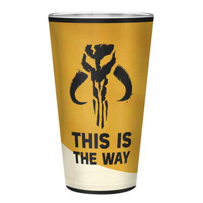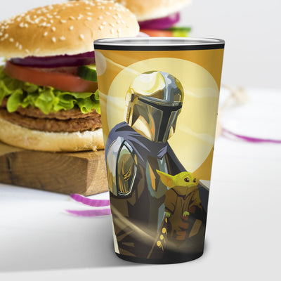 Da es aber ohnehin schwierig sein wird, einen der wenigen noch verbliebenen echten Mandalorianer zu finden, um mit ihm etwas zu trinken, kannst du stellvertretend das „The Mandalorian“ Trinkglas benutzen. Darauf zu sehen sind Din Djarin, Grogu, das Motto der Mandalorianer und der Schädel eines Mythosauiers, den der Kopfgeldjäger als Glücksbringer trägt.