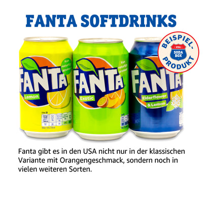 In der USA Soda Box - Mix aus 12 amerikanischen Softdrinks findest du eine sorgfältig zusammengestellte Auswahl von typisch amerikanischen Erfrischungsgetränken, wie beispielsweise verschiedene Coca Cola Sorten, Fanta oder A&W Sodas. Die 12 Dosen in der Überraschungsbox bieten dir einen breit gefächerten Einblick in die amerikanische Getränkekultur. Da der Inhalt für die Boxen zufällig ausgewählt wird, kann der Inhalt variieren. Einige Sorten haben wir dir gleich zweimal in die Box gelegt.