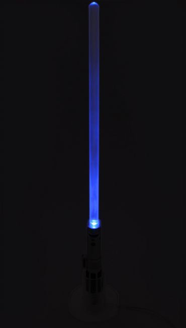 Dieses Luke Skywalker USB Laserschwert verfügt über eine von innen beleuchtete Plexiglasstange als Klinge und ist natürlich dem Original aus den Star Wars Filmen nachempfunden. Die Beleuchtung erfolgt über blaue LEDs im Griff und die dazu nötige Energie wird aus einem eingebauten Akku bezogen, der über die mitgelieferte USB Ladestation aufgeladen wird. Dazu muss die Ladestation nur mit einem USB Anschluss verbunden werden. Gleichzeitig ist die Ladestation auch eine formschöne Halterung, so dass das USB Laserschwert auch als Schreibtischdekoration genutzt werden kann.