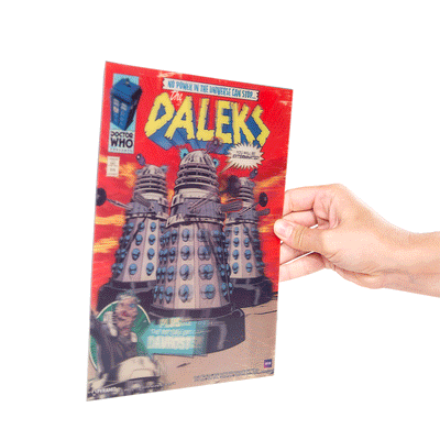 The Doctor Who Dalek 3D pictures bring some adversaries to your wall as fascinating 3D artwork. Through lenticular printing (also known as "wiggle picture"), the impression is created that the images emerge three-dimensionally from the poster and come to life.