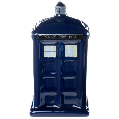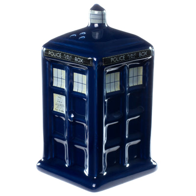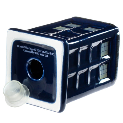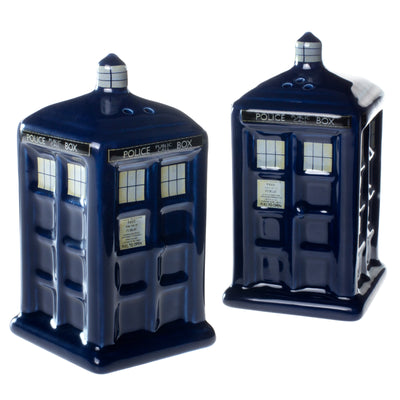• Set of salt and pepper shakers in the form of the TARDIS made of ceramic.