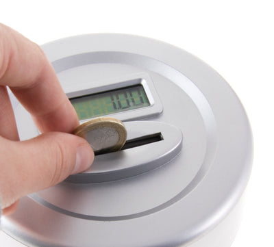 The Counting Money Box is a practical gadget that shows you on a display how much you have already saved.