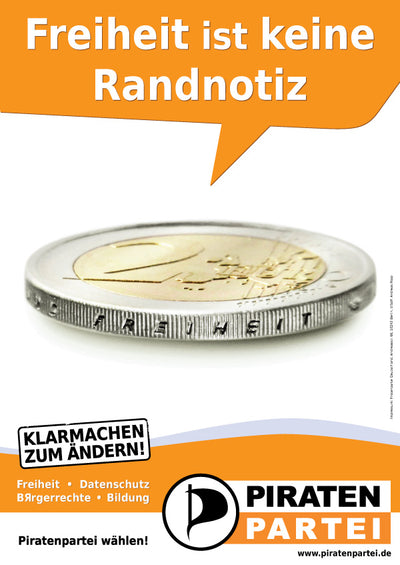 DIN A1 poster with the print Freedom is not a marginal note, without specifying an election date and with the URL piratenpartei.de