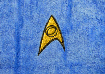 But now a few words about the Star Trek bathrobes themselves: they are made to a very high standard and have two pockets that can easily accommodate a tricorder or two, as well as a belt. They come in a universal size that should fit everyone - except perhaps Ltd. Uhura. Of course, they also have embroidered rank insignia on the chest and sleeves - just like the real original uniforms.