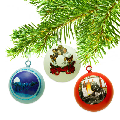 This Christmas is different, because with this Star Wars Christmas Ornament Set, even our battle-hardened heroes get the unique opportunity to play a bit of a perfect world: Han and Leia kiss under the mistletoe, AT-ATs pull Santa's sleigh, and Darth Vader plays Christmas carols on the piano while the fire crackles in the fireplace. Each ornament is decorated with a detailed Christmas motif and the Star Wars logo and can be attached to the branches of your Christmas tree with a ribbon.