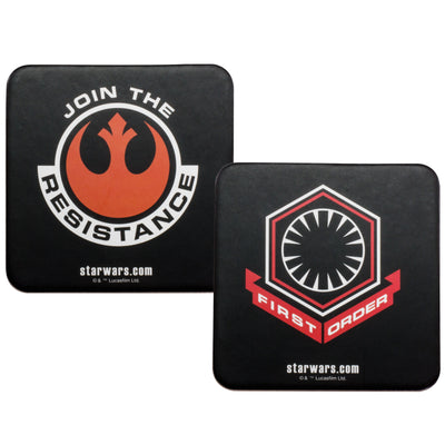 On the back of the coasters is either the emblem of the First Order or the Resistance. However, the balance is far from restored, as there are five dark side motifs with matching emblems and three light side motifs. In addition to Stormtroopers, Rey and Chewbacca, you can see who else is romping around on the covers in the photos at the top left. By the way, we are sure that the meticulous Kylo Ren uses the same coasters...