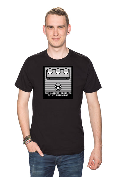 After some back and forth, you can finally choose your first and ultimately strongest pocket monster in Prof. Oak's lab. Three creatures are available - unless you're playing the Yellow-Electric-Mouse-Special-Edition - and with your choice, you also decide which monster your rival will receive.