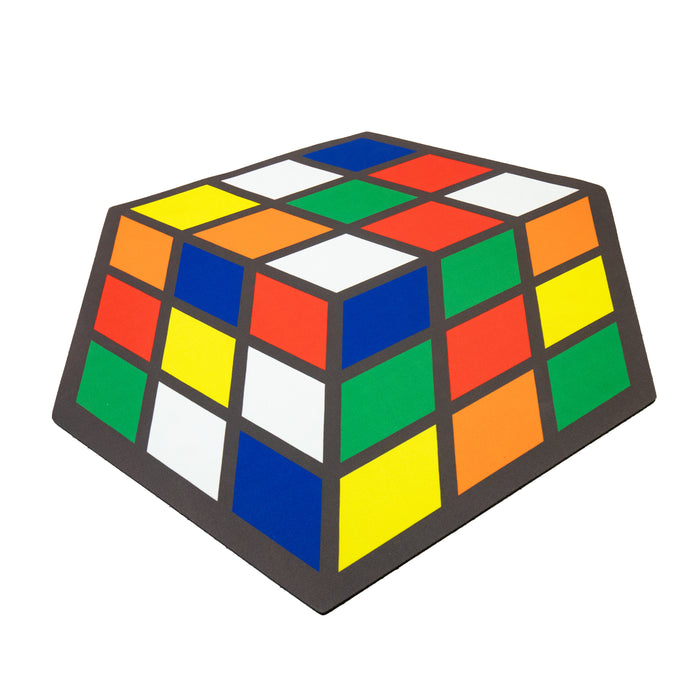 • Bathroom mat in the shape of a Rubik's cube in an unsolved state