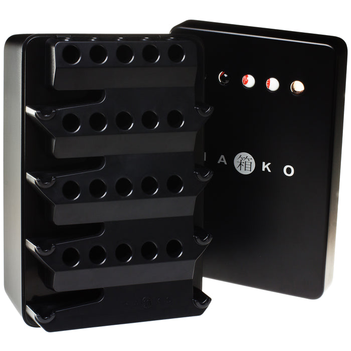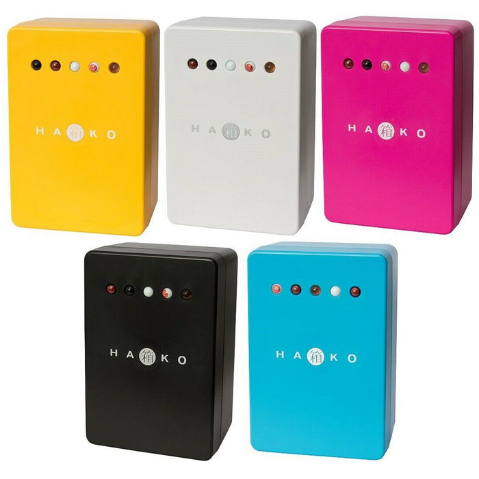 Most game variants require two or more players. Five marbles are already included, two white, two black and one clear. However, you can also add more marbles of the right size. If you are not playing, you can clip the five marbles to the inside of the lid - so Hako also looks decorative ;) Your Hako box is randomly selected from 5 different colors: Black, white, blue, pink, or yellow.