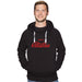 80% cotton from controlled organic cultivation and 20% recycled polyester with a thickness of 280 g/sqm. The hoodies have two separate pockets and fit true to size. Hoodies are only available in black and, depending on the design, in sizes S-5XL.