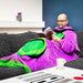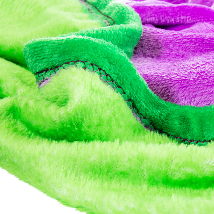 • Cuddly sleeve blanket in the design of a purple tentacle