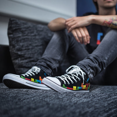 Ya tenemos el armario lleno de camisetas, suéteres y monos, solo nuestros pies han tenido que prescindir de la dosis correcta de diseño de nerd. Afortunadamente, nuestros autónomos son ahora Zapatos geek Hecho y esperando ser llevado por el mundo por usted, o viceversa. Hay la historia de origen aquí. De acuerdo con todas las ocasiones de nerd (siempre), el zapato está impreso con los conocidos bloques de arcade. Si prefiere un poco más de científico, también tenemos el Zapatos del sistema de época Liberaciones.
