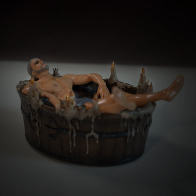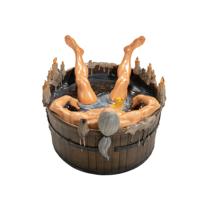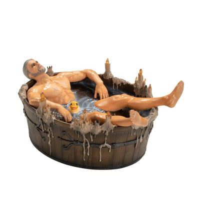Diese offiziell lizenzierte Dark Horse The Witcher Sammelfigur Geralt in der Badewanne erinnert an den mittlerweile berühmten Moment aus The Witcher 3: Wild Hunt. Diese Sammelfigur mit den zahlreichen kleinen Details, von der Holzmaserung der Wanne bis zu den Narben auf Geralts Oberkörper, würdigt die bekannte Szene. Dabei fehlt der Sinn für Humor nicht: Eine kleine Badeente schwimmt auf der Wasseroberfläche!