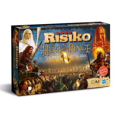 El Riesgo de "El señor de los anillos" Permite que un total de 2-4 jugadores luchen por el destino de la Tierra Media y envíe el clásico del juego de Breading al mundo imaginado por Tolkien. En lugar de cañones y mosqueteros, los elfos, Rawirrrim, Giant Eagle, Orcs, Black Rider y Cave Trolls compiten entre sí y luchan por el dominio sobre regiones bien conocidas como Rohan, Mordor y Co.