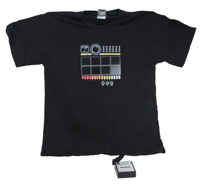 Welle:Erdball hace música con un viejo C64, tú haces música con tu camiseta. Ahora, completamente nuevo, está la Camiseta de Máquina de Tambores Electrónica, que finalmente te permite acompañar las Camisetas de Guitarra. Las bandas de rock funcionan de manera un poco diferente hoy en día ;)