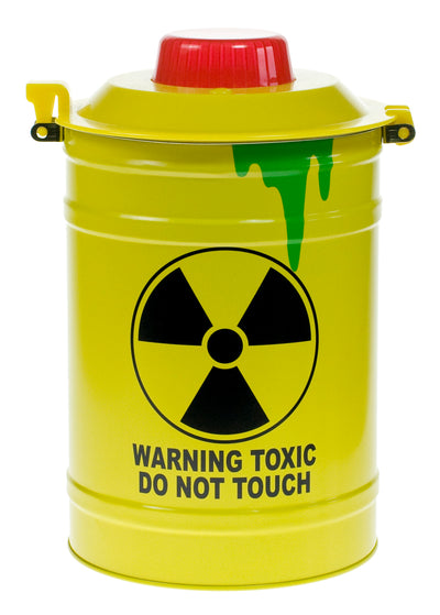 La caja de galletas de residuos tóxicos parece un contenedor para residuos radiactivos, lo que asegura que no solo los opositores a la energía nuclear mantendrán una distancia respetuosa de ella. Si alguien se atreve a abrir la tapa, suena una fuerte señal de advertencia y el botón de alarma en la tapa parpadea. De esta manera, el ladrón de galletas será atrapado en el acto.