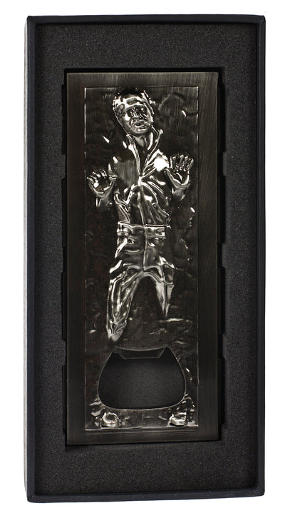 Para abrir su bebida isotónica de la manera más elegante y adecuada para un cazarrecompensas, Boba Fett solo tiene una opción: el Abridor de botellas Han Solo en Carbonita :) Así, cada vez que abre una botella, recuerda uno de sus mayores logros: congelar a Han Solo y luego entregarlo a Jabba the Hutt, lo que le valió 400,000 créditos - 250,000 de Jabba y otros 150,000 de Darth Vader. Si eso no es nada, incluso un cazarrecompensas puede vivir cómodamente por un tiempo y comprar muuuuuchas cajas de cerveza ;)