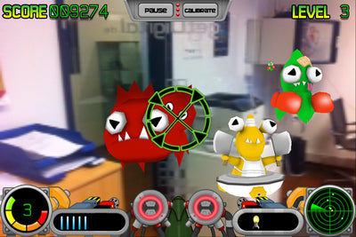 Entonces solo necesita caminar por el área y mirar la visualización del dispositivo I que mira hacia la cuarta dimensión, el Realidad aumentada, hecho posible. ¡Los extraterrestres vienen hacia ti desde cualquier lugar, mantén la mira en el medio y dispara! Para una orientación más fácil, el programa está equipado con un indicador direccional, para que pueda planificar de antemano qué alienígena debe creer a continuación. ¡Allá! ¡Un monstruo tentáculo al lado del monitor de la computadora! ¡Y ahí! ¡Una ingesta amarilla en el armario! Si la munición llegue a su fin, es suficiente inclinar la apunga nuevamente y el fuego permanente puede continuar. Por supuesto, la información sobre la tasa de lanzamiento también se muestra.