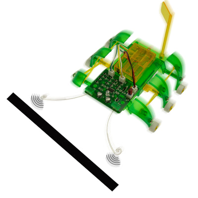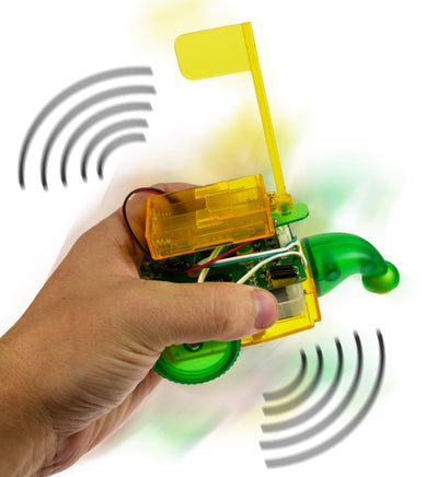 El Bumper Bug es la mezcla perfecta de sofisticación técnica y apariencia insectoide con una longitud (incluyendo antenas) de aproximadamente 20 cm. Al activarlo, comienza a moverse y, gracias a sus sensibles antenas alámbricas, es capaz de detectar obstáculos y evitarlos de forma autónoma.