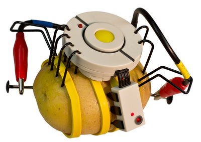 Si te perdiste las exhibiciones de los niños en la feria de ciencias de los Apperture Science Labs, tenemos algo para ti. Puedes casi recrear el proyecto de Chell, solo que tu patata no generará electricidad real, sino que (gracias a baterías ocultas) se convertirá en PotatOS. Tu propio PotatOS parecerá funcionar con energía de patata, pero para los efectos de luz y sonido, necesitará un poco más de potencia. Al final, te sentirás como en los buenos viejos tiempos: GLaDOS te insultará de nuevo y podrás llevarla contigo ;)