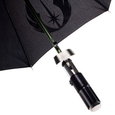 De acuerdo, admito que es menos el clima y más el lado oscuro lo que molesta a los Jedis. Sin embargo, no siempre es fácil mantener el buen humor bajo la lluvia desagradable. Este paraguas con el diseño del sable de luz de Yoda te infunde nuevo valor. El mango muestra todos los detalles del original, el eje en sí está anodizado en verde y representa la hoja una vez que el paraguas está abierto. En el exterior del paraguas se puede ver dos veces el emblema plateado de la Orden Jedi.