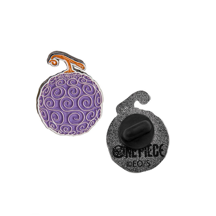 El alfiler está fabricado con una aleación de zinc y sigue fielmente el modelo de la fruta del diablo del manga y el anime. Aunque no es apta para comer y no confiere a su portador poderes sobrehumanos, al menos no tendrás que meterte de contrabando en un barco pirata ni perderás la capacidad de nadar. En cambio, podrás demostrar tu pasión por la búsqueda del One Piece y tal vez encontrar compañeros leales para tu propia aventura.
