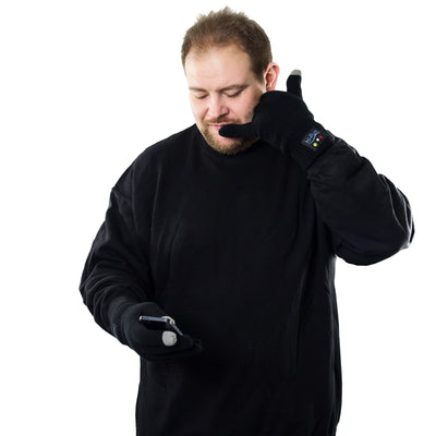 C'est possible parce qu'un vrai haut-parleur est cousu dans le gant gauche du Hi-Call 2.0 à l'endroit du pouce et un microphone est cousu dans le petit doigt. La connexion avec ton téléphone portable se fait par Bluetooth et tada : tu obtiens un incroyable combiné téléphonique à gants !