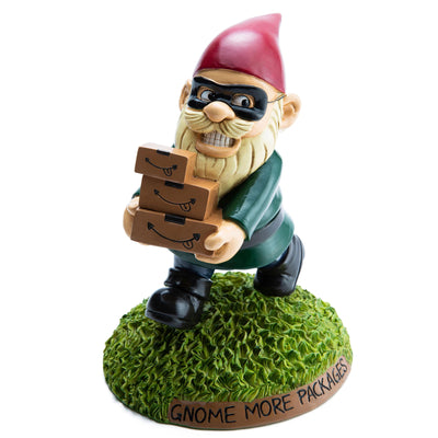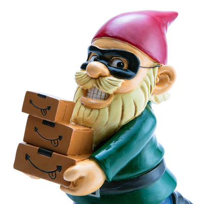 Ce Voleur de paquets nain de jardin Il parcourt le quartier pour s'emparer de tes paquets (et de ceux de tes voisins). Ce gnome en résine synthétique d'environ 25 cm, peint à la main, porte, en plus de son sourire malicieux, un masque sur les yeux pour cacher son identité et, bien sûr, un bras entier de paquets fraîchement livrés par un célèbre site de vente par correspondance en ligne. Pour que tu puisses mieux le placer, il se tient sur une colline d'herbe qui lui donne de la stabilité.