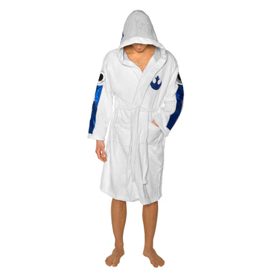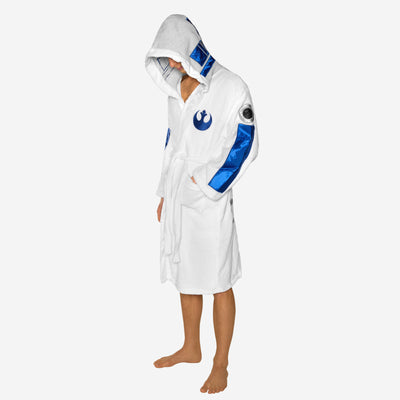 Tous ceux qui, lors du dernier recensement, ont déclaré leur confession Jedi savent que même les petits droïdes ont des sentiments. Et parfois, ils ont simplement besoin d'un peu de confort. Plus confortable que dans ce peignoir R2-D2, tu ne te sentiras jamais. :)