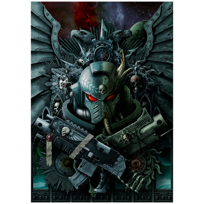 Sur le Puzzle Warhammer 40.000 de 500 pièces, tu trouveras un exemplaire de l'extraordinaire Primaris Marines avec de nombreux détails et l'aigle impérial à deux têtes en arrière-plan. Mais le guerrier dispose de deux côtés : A gauche, dans toute sa splendeur, le fusil Bolt marqué de sceaux de pureté, à droite, corrompu par le chaos, marqué par la décadence, la corruption, la mutation. A gauche l'aigle, à droite l'étoile du chaos. Un détail cool est le film métallique rouge et l'effet glow-in-the-dark. Ce motif détaillé est si bon qu'il est également inclus dans ton puzzle sous forme de poster.