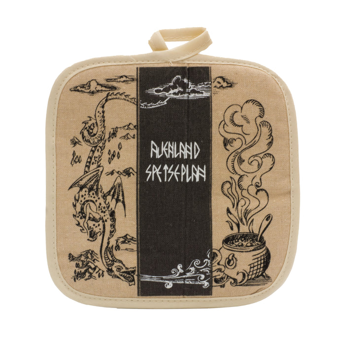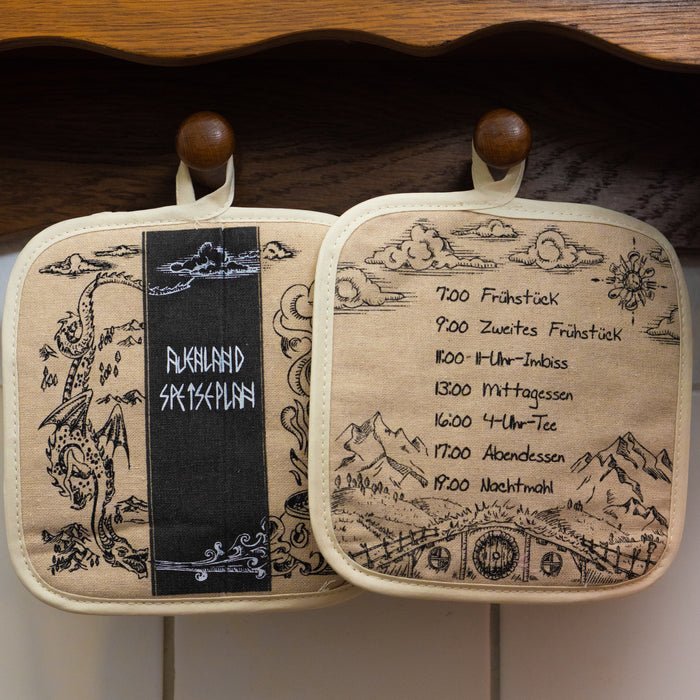 • Set van 2 pannenlappen met het menu van de halflingen uit de Gouw
