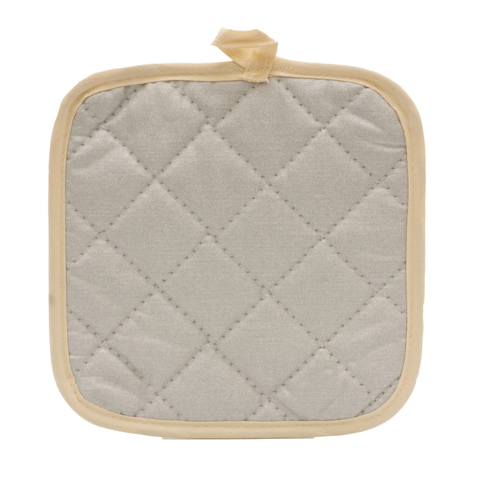 Halflingen worden vaak belachelijk gemaakt - om hun grootte, hun harige voeten of hun eetgewoonten. Maar laten we eerlijk zijn, we benijden ze eigenlijk om hun zeven maaltijden per dag. Zoveel heerlijk eten lijkt hen erg gelukkig te maken, als je kijkt naar de meeste inwoners van de Gouw. En er is niets mis mee om hun eetgewoonten van tijd tot tijd te imiteren. De twee pannenlappen tonen je het exacte menu van de Gouw zodat je geen maaltijd mist (het zou schandalig zijn om het tweede ontbijt over te slaan!) en beschermen zowel je handen als je tafel tegen hete potten en pannen.