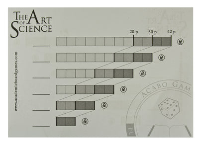 La particolarità di questo gioco è che puoi scegliere l'ordine di punteggio delle categorie. La categoria più adatta a te si trova in cima alla scheda di punteggio. Ciò significa che biologi e matematici possono competere tra loro e avere (quasi) le stesse possibilità. Puoi anche influenzare la durata del gioco impostando diversi obiettivi di punti (20, 30, 42).