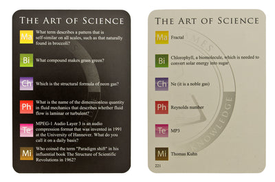 Se sei bloccato, puoi chiedere consiglio a un altro giocatore, ma dovrai dividere i punti con lui... L'arte della scienza è sostanzialmente facile da giocare, ma le domande sono difficili e i campi d'azione riservano alcune sorprese.