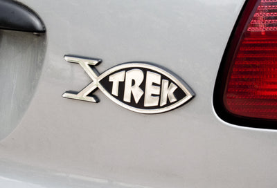 Met de Trek Fish Autoplakette, die je eenvoudig bijvoorbeeld aan de kofferbakdeur van je niet-vliegende Earthshuttle kunt bevestigen, kun je de shuttles achter je op algemeen erkende wijze laten zien waarin je gelooft. Gewenste plek kort schoonmaken, achterste kleefstrip verwijderen, opplakken en klaar. De plakette blijft muurvast zitten, maar zo vaak wisselt men ook niet van religie ;)