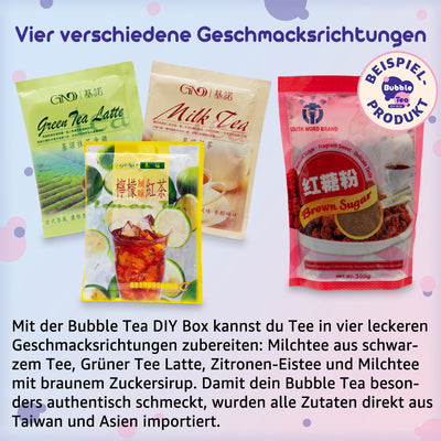 Descrizione Bubble Tea DIY Box: Traditioneller Milchtee mit Tapioka Perlen