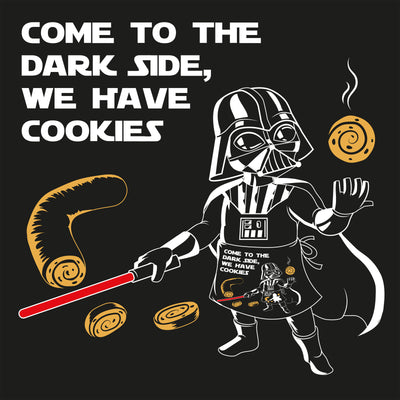 Chi può biasimare il cattivo, che usa i suoi poteri e la sua spada energetica per cuocere sul grembiule, per il suo tradimento? Dopo tutto, è la prova vivente che il Lato Oscuro ha davvero dei biscotti. E sembrano anche molto gustosi. Ti fa venire voglia di cucinarne un po' anche tu e di conquistare qualche pianeta...