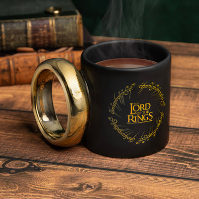 Deswegen eignet sich keine Tasse besser für dieses finstere Getränk (schwarzer Tee geht auch), als der Der Herr der Ringe Becher Der Eine Ring. Schon bei der Berührung des Henkels in Form des goldenen Ringes wirst du morgens spüren, wie dich neue Lebensenergie durchströmt. Nach dem ersten Schluck wirst du nicht mehr aufhören können zu trinken, bis die 500 ml leer sind, und dich danach mit Feuereifer auf die Aufgaben des Tages stürzen. Nutze diese Macht mit Bedacht und achte darauf, zwischendurch auch genug Wasser zu trinken! ;)