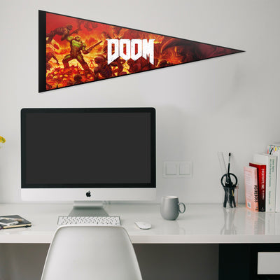 Dovrebbe quindi essere scontato celebrare e onorare il tuo gioco preferito allo stesso modo della tua squadra di calcio o di hockey su ghiaccio preferita. Con il gagliardetto Doom potrai non solo decorare la tua casa, ma anche mostrare la tua fedeltà allo sport dell'"uccisione dei demoni".