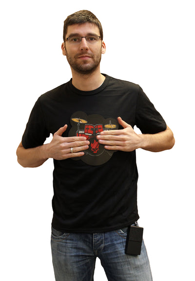 Accompagna le danze spontanee sotto la pioggia con i tuoi ritmi o suona la batteria fino ad aumentare la tua paghetta. Puoi anche usare la maglietta per fare il tifo per i tuoi amici: ogni volta che entrano o escono dalla stanza, puoi creare un suono indimenticabile con i sette diversi suoni di batteria.